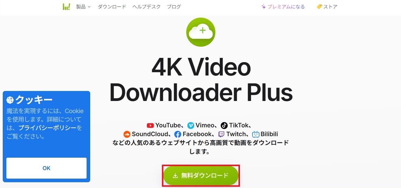 - 4K Video Downloader Plus公式サイトにアクセスした際に警告表示はありませんでした。