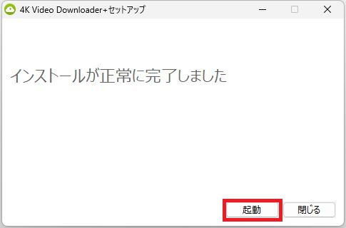 インストールが開始され、インストールが正常に完了しましたという表示がされます。起動を1回左クリックをしてください。