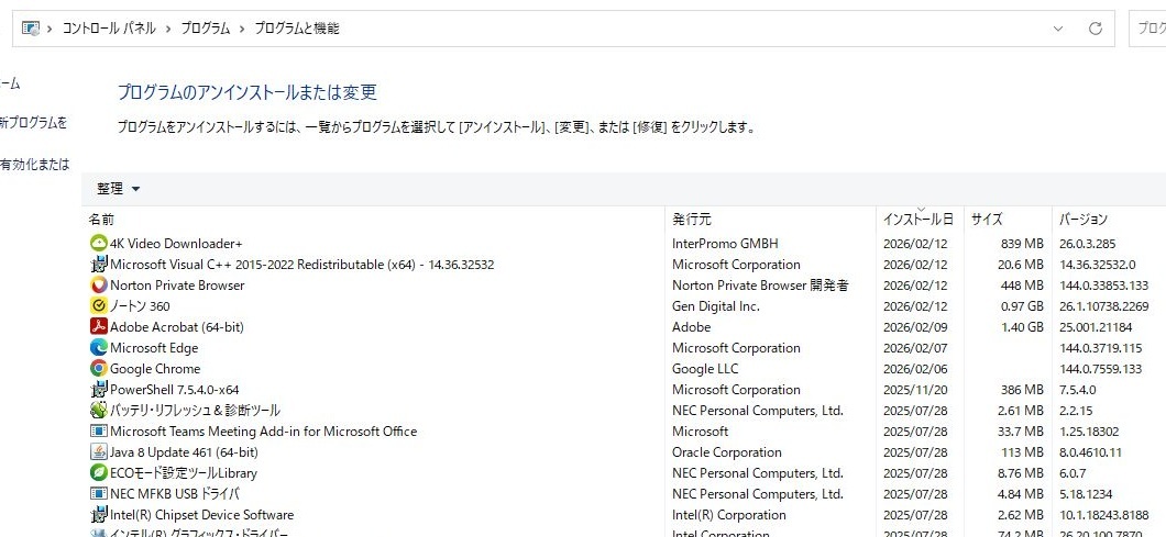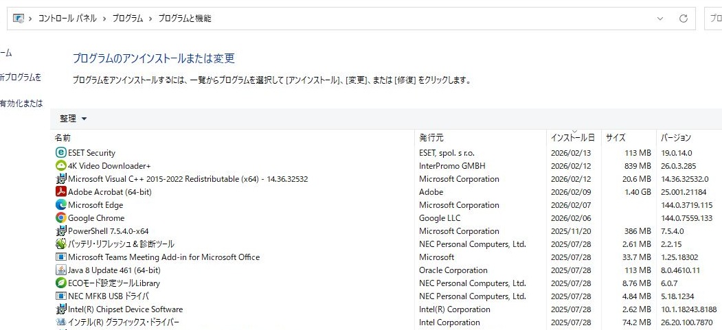 2026年02月にMcAfeeを先にインストールした状態の場合については、