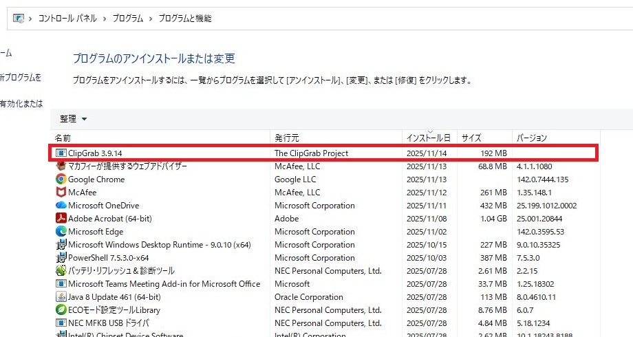 ClipGrab 最新版にアップデートをおこなう方法