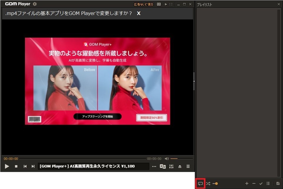 - リピート再生は設定なのでGOM Playerを終了させて再度GOM Playerを起動させてもリピート再生設定がされた状態です。