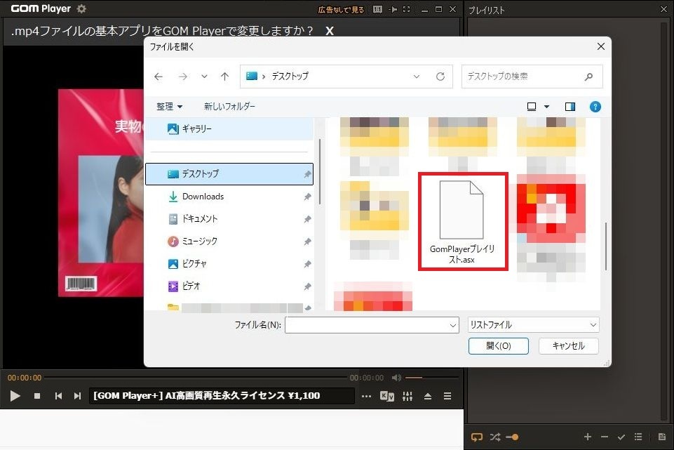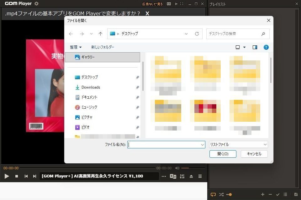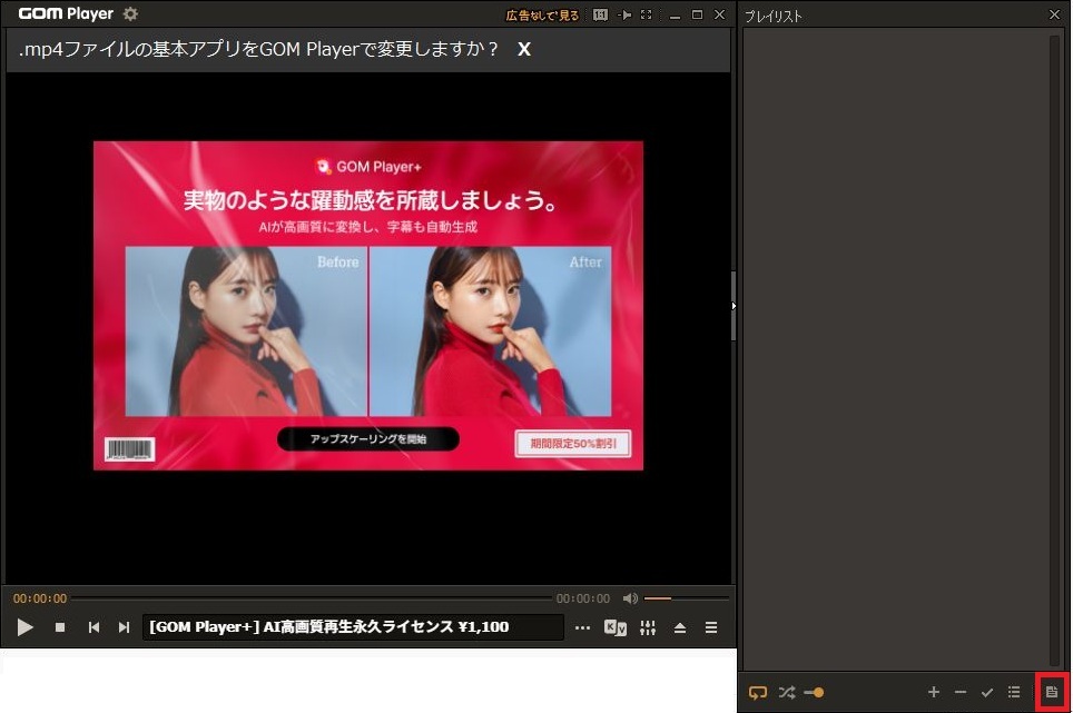 GOMPlaye(ゴムプレイヤー)を起動させてください。右下のプレイリストを1回左クリックしてください。