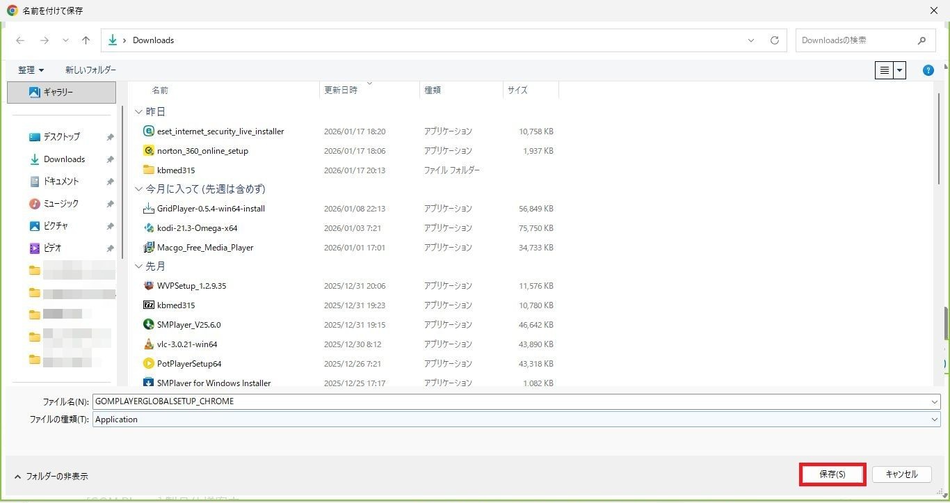 「GOMPLAYERGLOBALSETUP_CHROME」のダウンロードが開始されます。