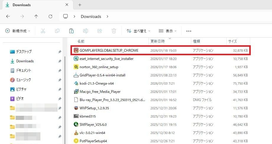 「GOMPLAYERGLOBALSETUP_CHROME」を1回左クリックしてください。