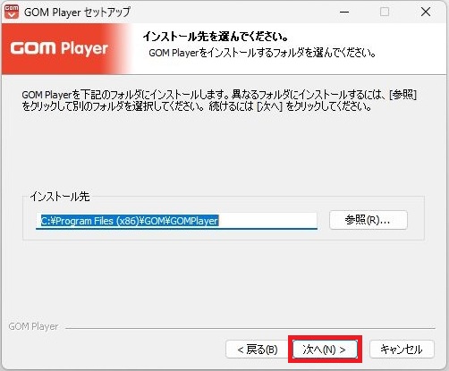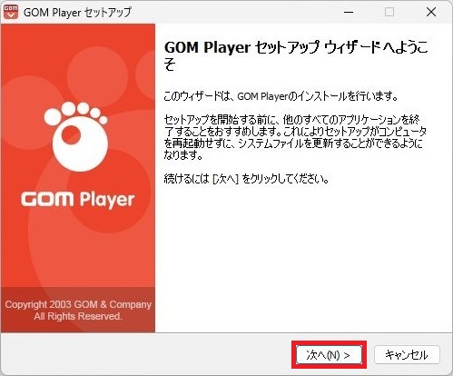 GOM Playerのインストールをおこないます