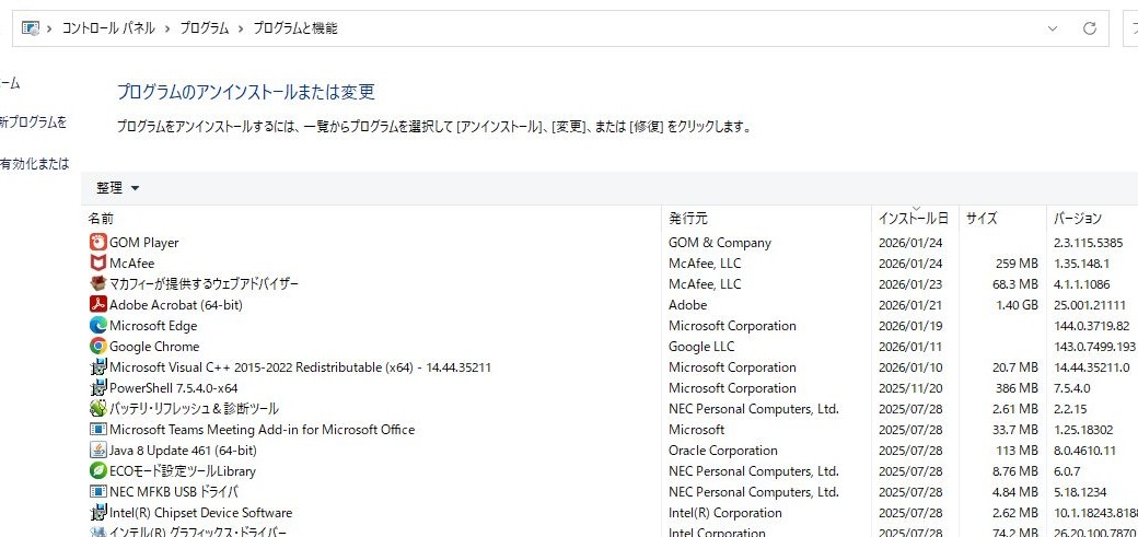 - その後にMcAfeeをインストールをおこなっています。