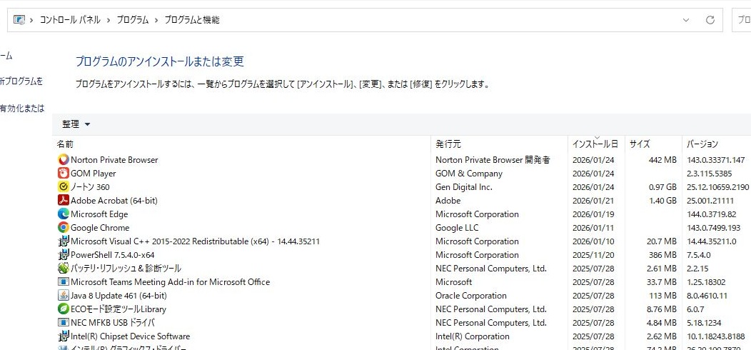 - その後にNortonのインストールをおこなっています。