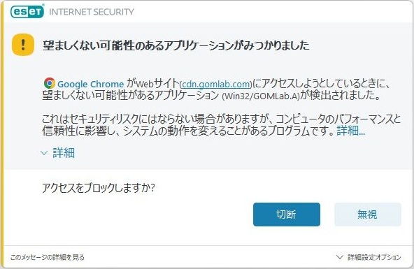 そのためchromeブラウザの履歴を削除した後にesetのコンピューターの検査という項目で再度ウイルスチェックをおこなったところ検出されませんでした。