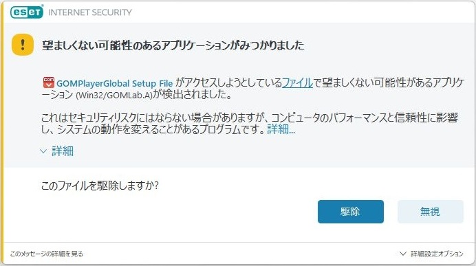 こちらの手順の理由としてesetのインストールをおこなった後にGOM Playerのインストールをおこなった場合、GOM Playerのファイルの一部がインストールされない可能性があります。