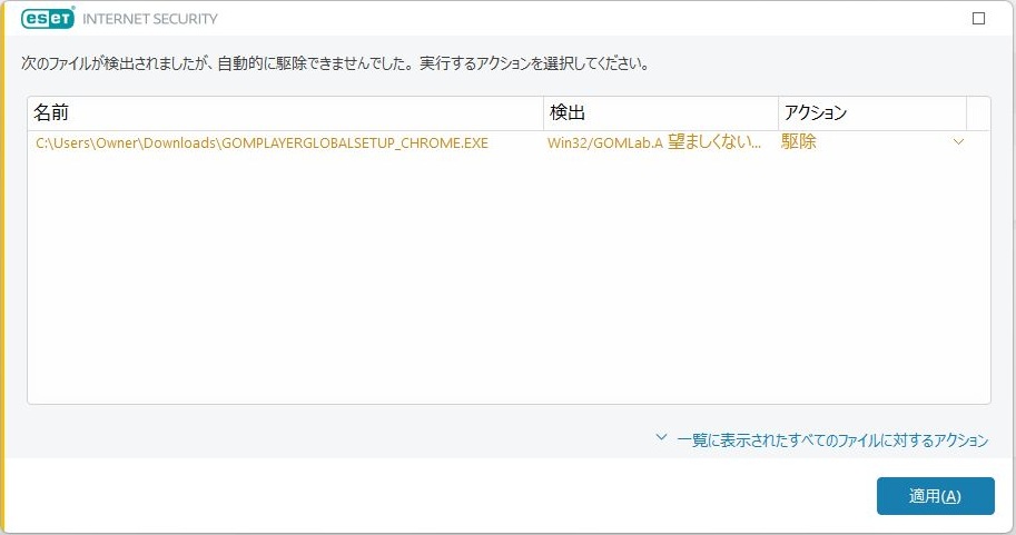 詳しくは以下の通りです。C:\Users\Owner\Download\GOMPLAYERGLOBALSETUP_CHROME.EXEという表示がされています。