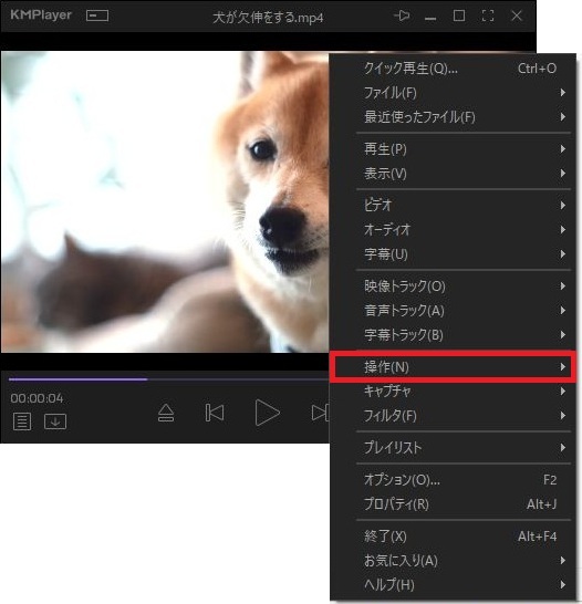 - KMplayerで動画の再生を一時停止された状態で操作が可能です。