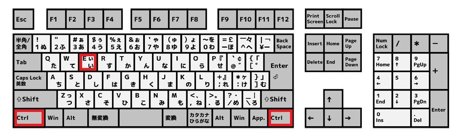 キーボードのCtrlを押したままEを1回押してください。こちらについては実際に押して動作がされることを確認しております。