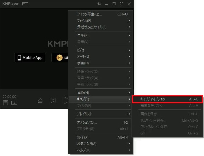 KMplayer キャプチャー(静止画取得)をおこなう方法