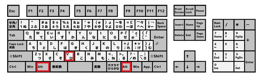 キーボードのALTを押したままVを1回押してください。こちらについては実際に押して動作がされることを確認しております。