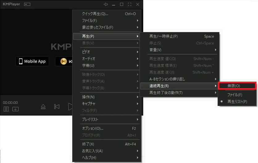 KMplayer 動画のリピート再生(連続再生)設定方法