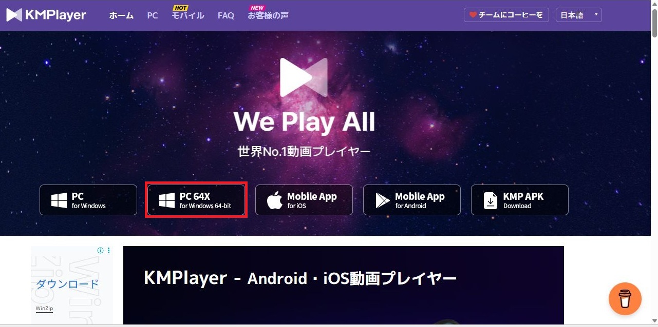 *OSによってKMplayer64xダウンロードという表示部分は異なるかと思います。