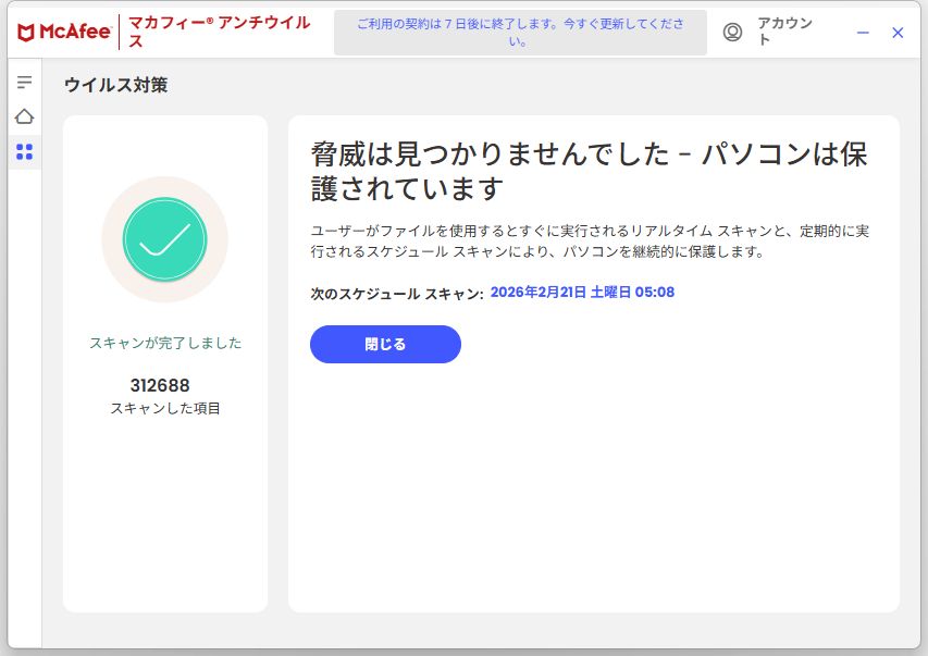 2026年02月 McAfeeによるウイルス感染の確認結果