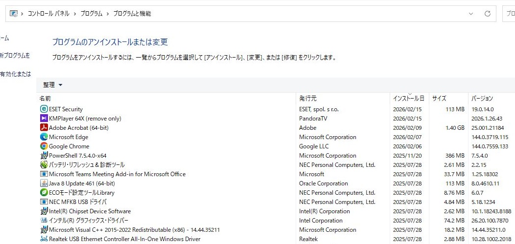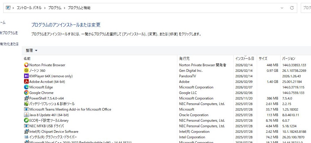 2026年02月にMcAfeeを先にインストールをおこなった場合については、