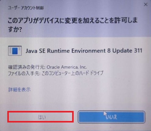 このアプリがデバイスに変更を加えることを許可しますか?という表示がされます。「はい」を1回左クリックしてください。