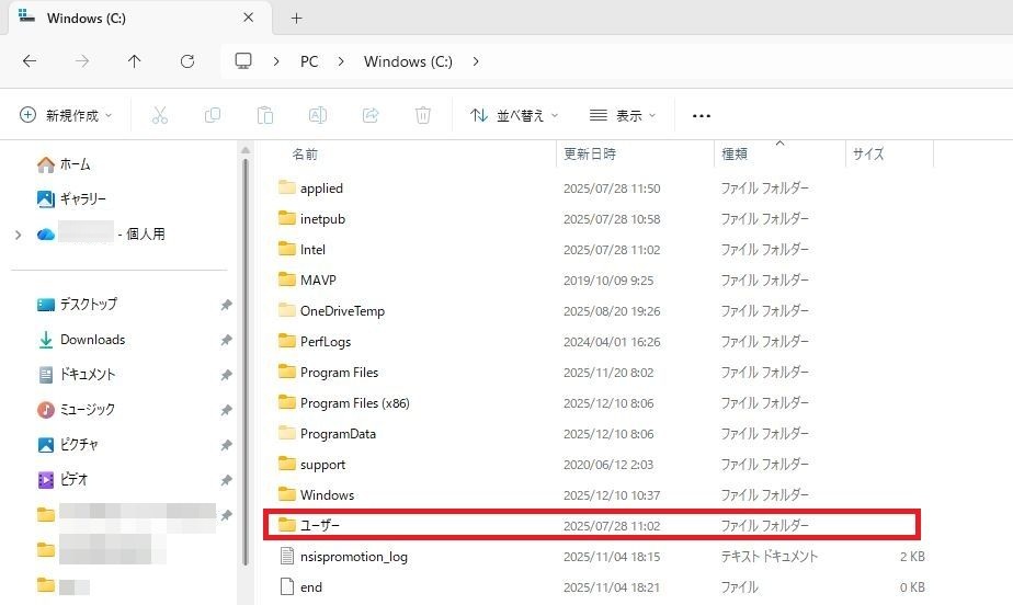 「ユーザーフォルダ」を2回連続で左クリックしてください。