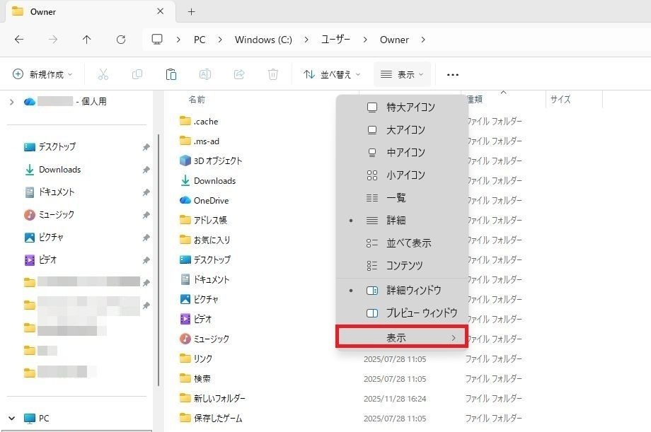 「Ownerフォルダ」を2回連続で左クリックしてください。