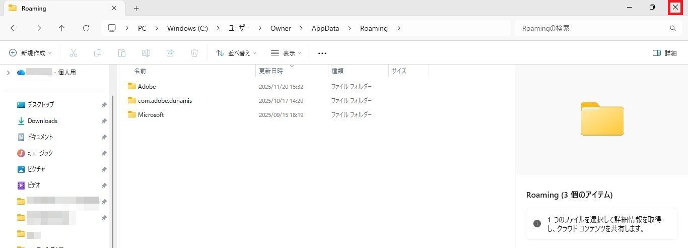 「Roamingフォルダ」を2回連続で左クリックしてください。