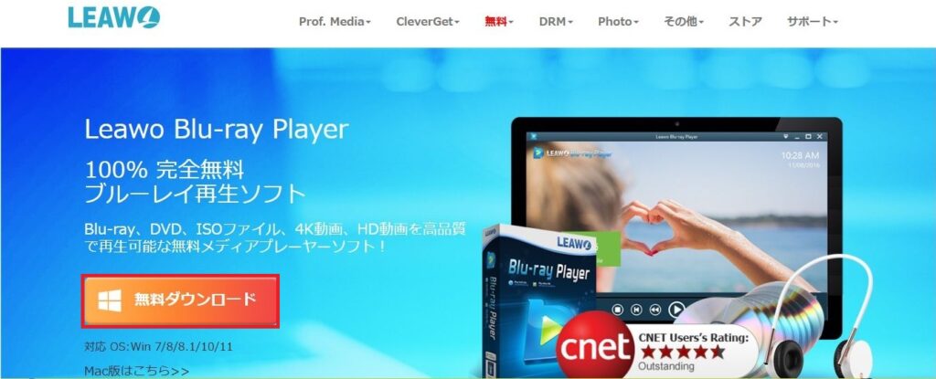 Windowsをご利用されている場合はhttps://www.leawo.org/jp/blu-ray-player/にアクセスをおこなって「無料ダウンロード」を1回左クリックしてください。