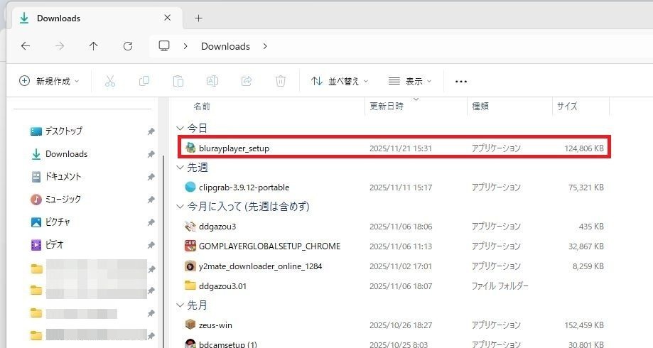 ダウンロードをおこなった「blurayplayer_setup」を1回左クリックをしてください。