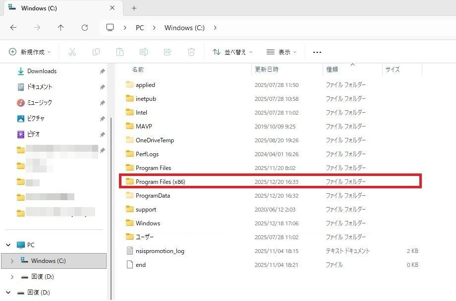 「Program Files(x86)」を2回連続で左クリックしてください。