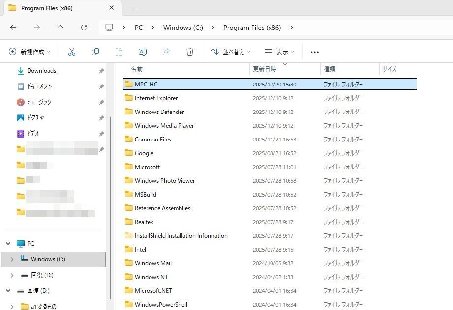 • MPC-HCはご使用のコンピューターから正常に削除されました。という記載が表示された場合でもパソコンのCドライブに関連するフォルダが残ることがありますが、今回はありませんでした。