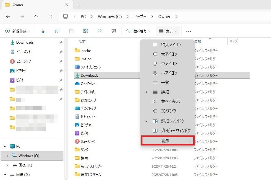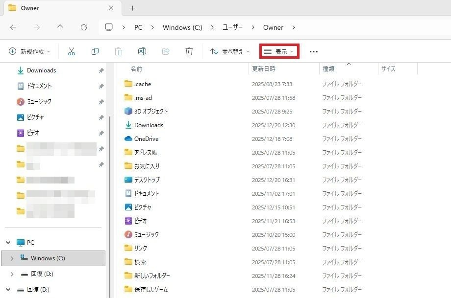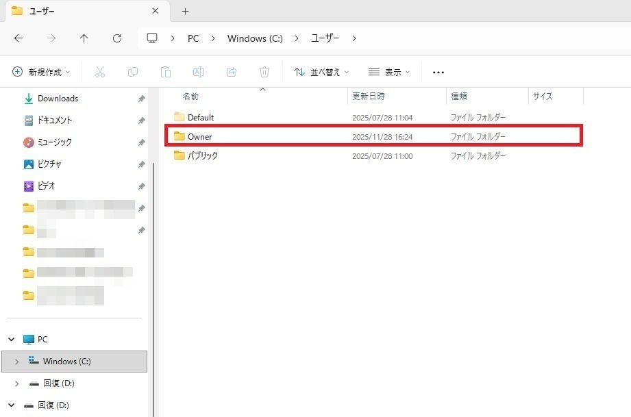 「Ownerフォルダ」を2回連続で左クリックしてください。