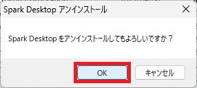 Spark Desktop をアンインストールしてもよろしいですか?「OK」を1回左クリックしてください。