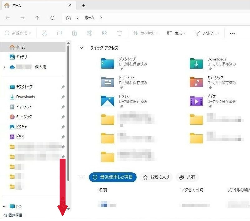 左のナビゲーションウィンドウのカーソルを下に移動させてください。