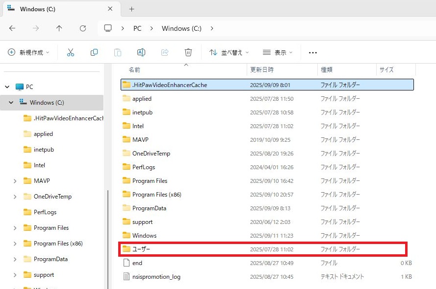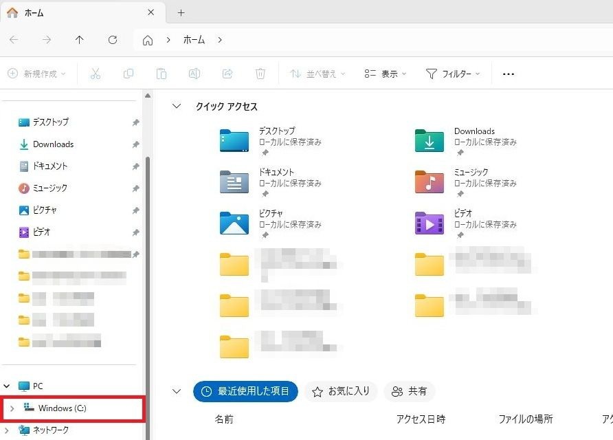 左側の「Windows(C)」を2回連続で左クリックしてください。