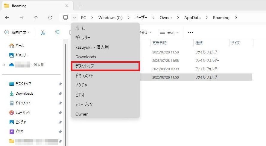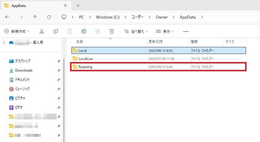 「Roamingフォルダ」を2回連続で左クリックしてください。