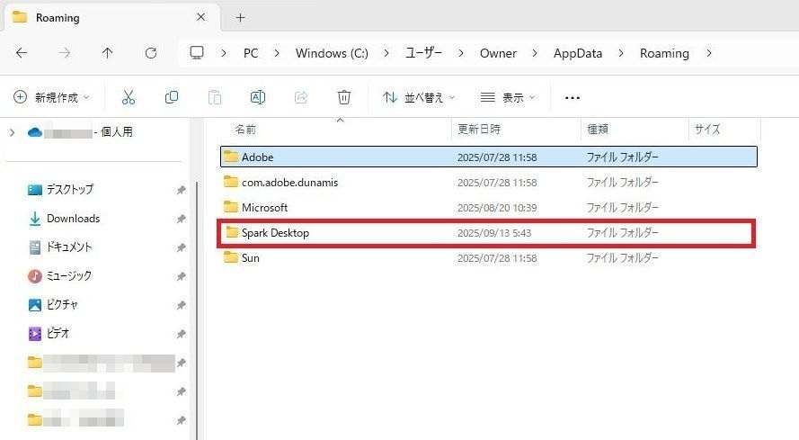 - Spark Desktopフォルダ