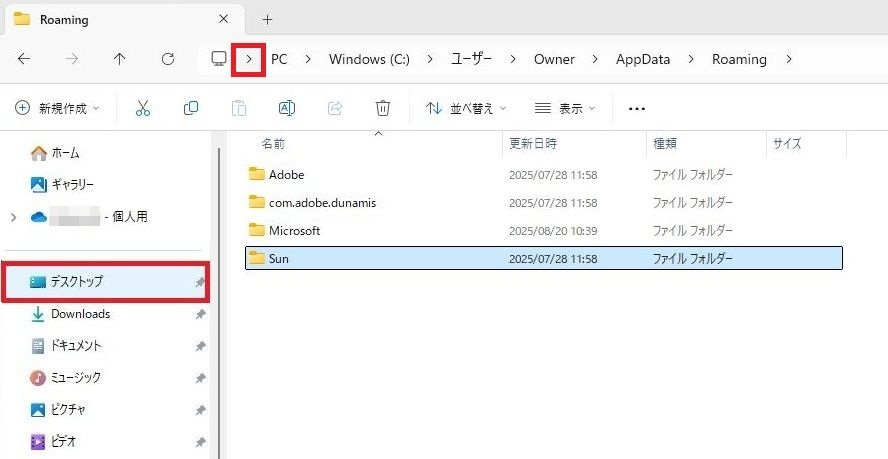 Roamingフォルダ内の削除