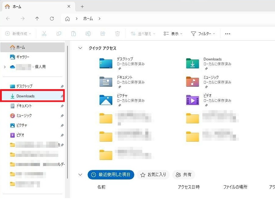 左側のナビゲーションウィンドウのメニューからダウンロードを1回左クリックしてください。