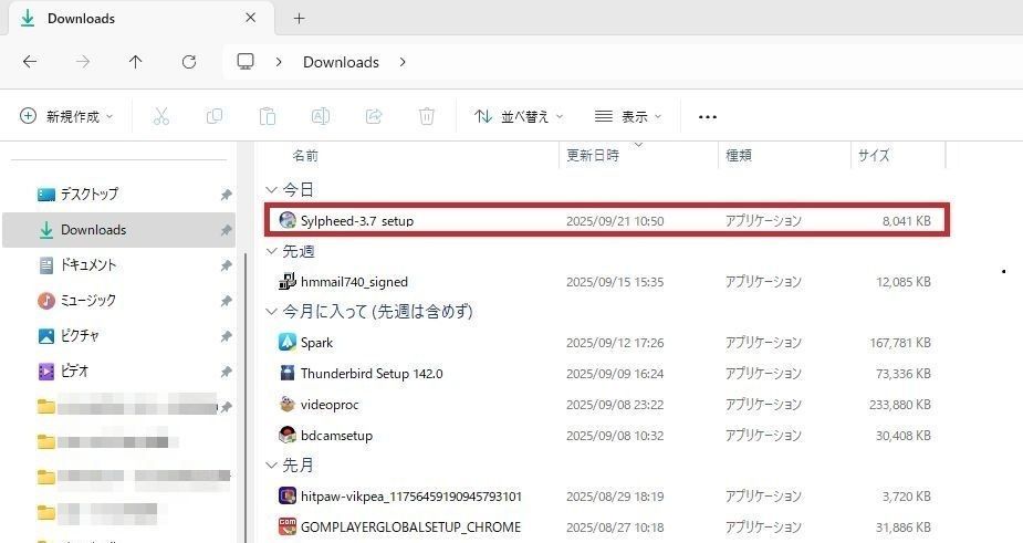 シルフィードのダウンロードファイルを1回左クリックしてください。