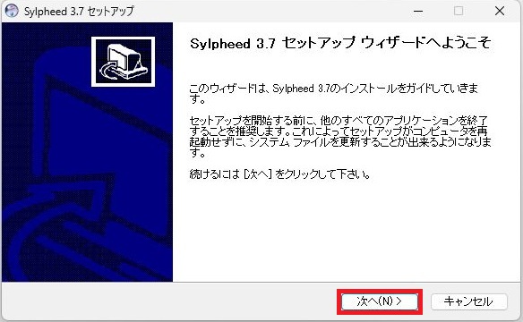 セットアップウィザードが立ち上がります。次へを1回左クリックしてください。