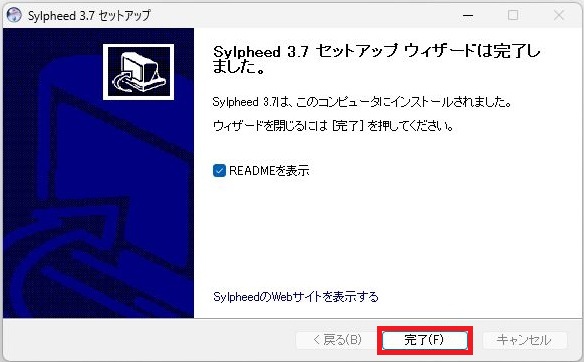 セットアップ ウィザードが完了しました。インストールに関してはこれで終了です。
