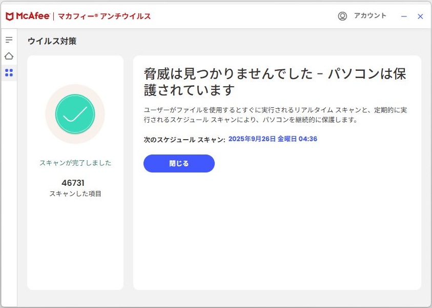 2025年09月22日にSylpheed(シルフィード)メールソフトのインストールをおこなった後にMcAfee(マカフィー)アンチウイルスソフトの有料版でウイルが入っていないかスチェックをおこなっています。