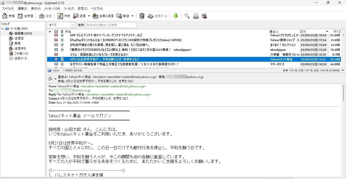 - 広告掲載:2025年09月22日付の確認でメールソフトの画面内、送信メール内、受信メール内に広告は表示されておりません。