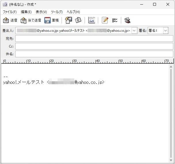 送信画面サンプル(実際にメールアドレスを設定をおこなっています。メールの送信はできています)
