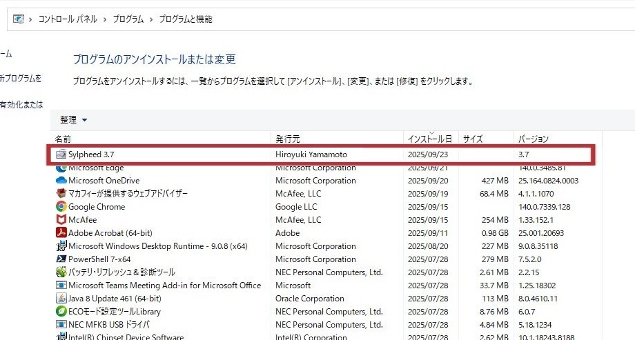 Windows10、Windows11で不要になったSylpheedメールソフトのアンインストール方法及び関連フォルダ(Sylpheedという名称)の削除方法をご紹介しています。