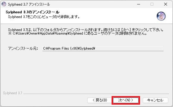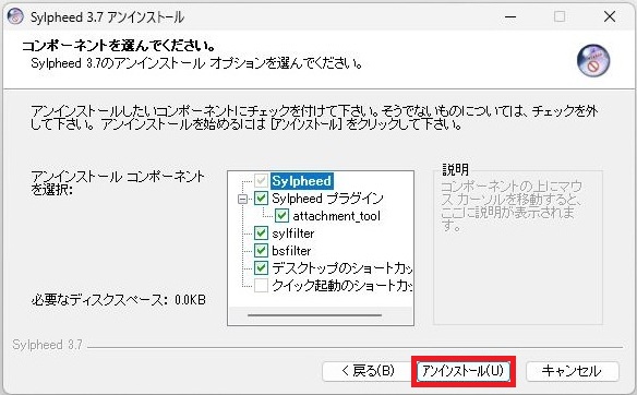 Sylpheedメールソフト アンインストール方法