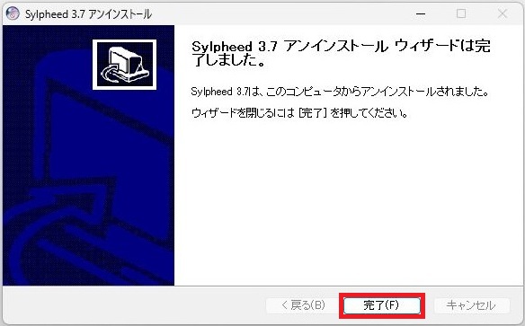 Sylpheed 3.7のアンインストールが完了しました。