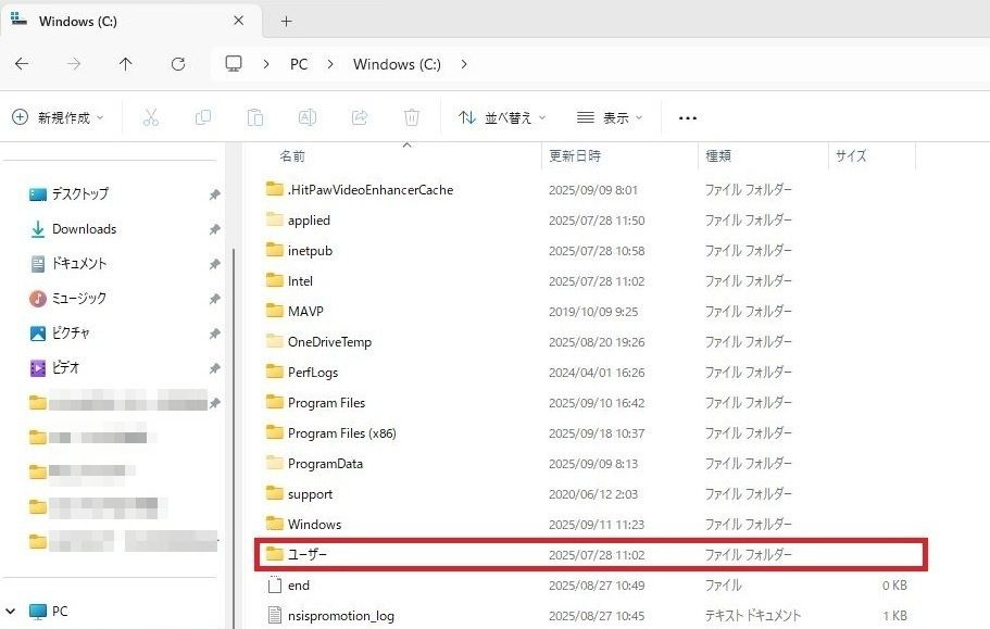 左側のWindows(C)を1回左クリックをしてください。
