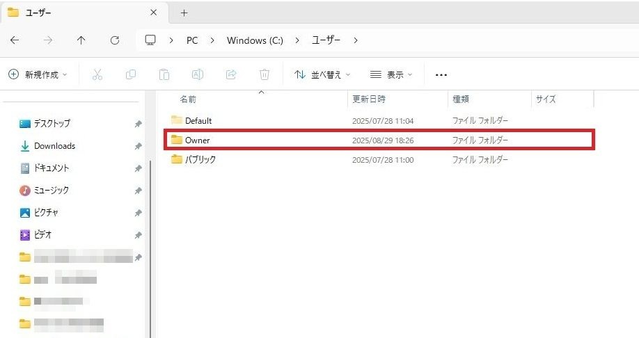 「Ownerフォルダ」を2回連続で左クリックしてください。