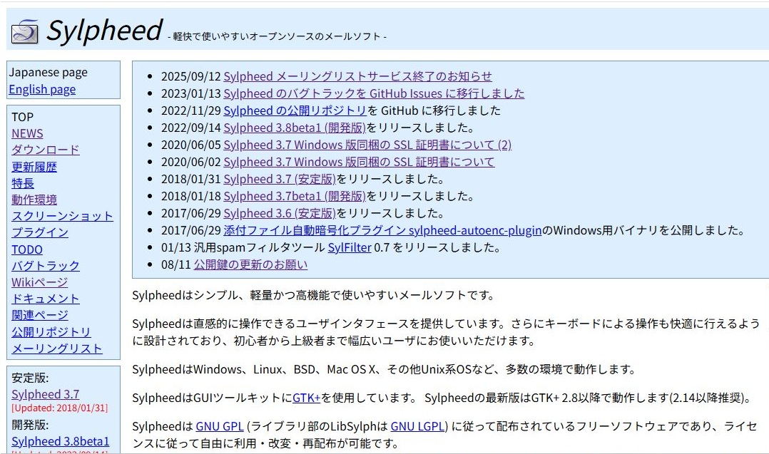 Sylpheedメールソフト アンインストール方法